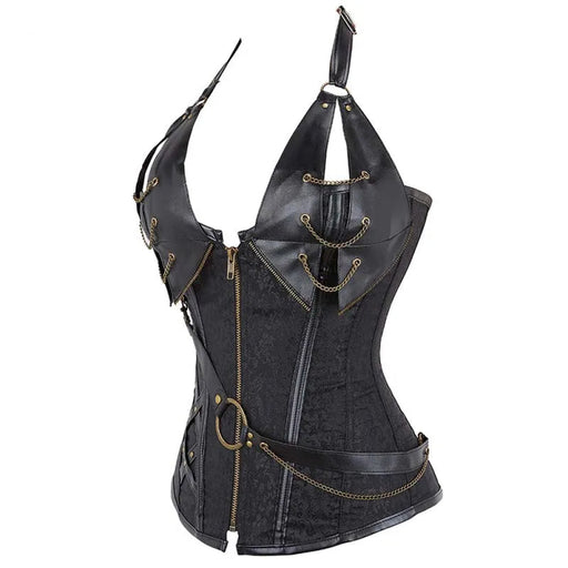 Deep V Halter Chest Binder Bustier Black Brown Steampunk Gothic Corset Plus Size With Zip