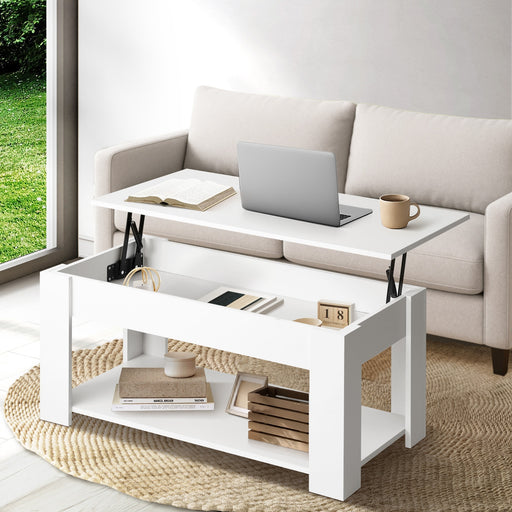 Coffee Table Lift Up Top Modern Tables Hidden Book Storage White