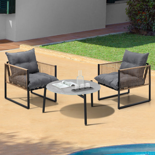 Outdoor Patio Set Furniture Grey 70Cm Coffee Table Rattan Chairs 3Pcs