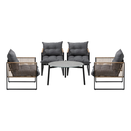 Outdoor Patio Set Furniture Grey 70Cm Coffee Table Rattan Chairs 5Pcs