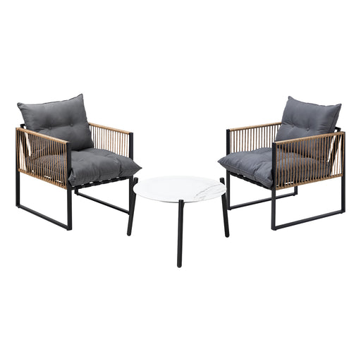 Original price $1,431.99 - Original price $1,431.99Original price$1,431.99$1,431.99 - $1,431.99Current price $1,431.99| /Features: • Sturdy construction• 5mm glass tabletop• Mable-like finish tabletop• Table with three iron legs• UV-resistant PE wicker• Plush cushione...