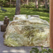 • The arcadia green cotton sateen quilt cover set by bedding house depicts an idyllic landscape of wooded hills.