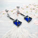 925 Sterling Silver Dangle Earrings With Sapphire Blue Stones Elegant For Women