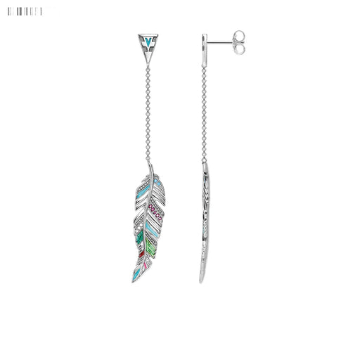 925 Sterling Silver Colourful Feather Drop Earrings For Women Autumn Jewelry