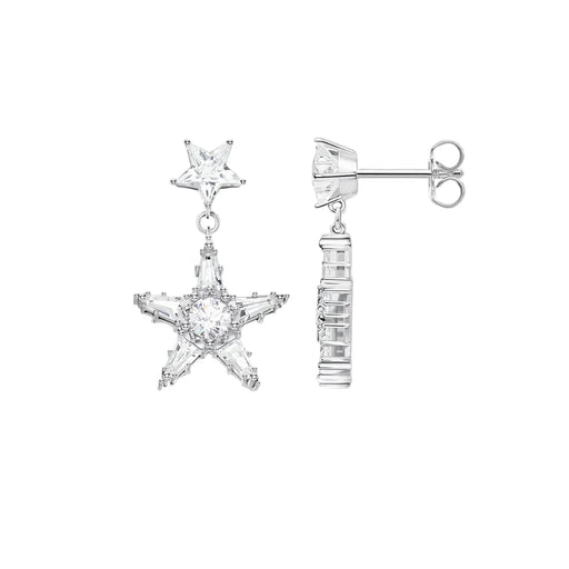 925 Sterling Silver Earrings White Stars Shine Women
