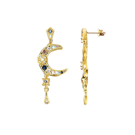 925 Sterling Silver Bohemian Golden Drop Earrings For Women Royalty Moon