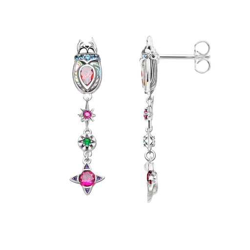 925 Sterling Silver Vintage Scarab Star Earrings Lucky Jewelry For Women