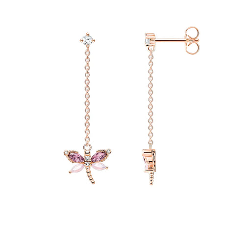 925 Sterling Silver Rose Gold Dragonfly Drop Earrings With Stones