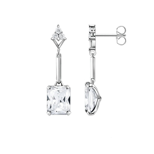 925 Sterling Silver White Octagon Cut Zirconia Dangle Earrings Real Romantic Gift For Women
