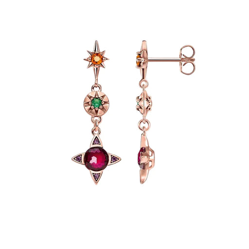 925 Sterling Silver Playful Vintage Earrings Colourful Lucky Symbols Rose Gold For Women