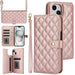 For Iphone 15 Crossbody Multifunction Rhombic Leather Phone Case