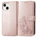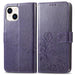 For Iphone 15 Four-Leaf Clasp Embossed Buckle Leather Phone Case