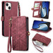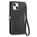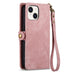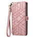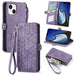 For Iphone 15 Geometric Zipper Wallet Side Buckle Leather Phone Case