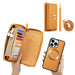 For Iphone 15 Magsafe Crossbody Multi-Functional Zipper Wallet Litchi Leather Phone Case