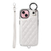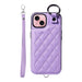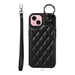 For Iphone 15 Rhombic Texture Card Bag Phone Case With Short Lanyard