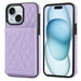 For Iphone 15 Splicing Rhombic Texture Card Bag Phone Case With Long Lanyard