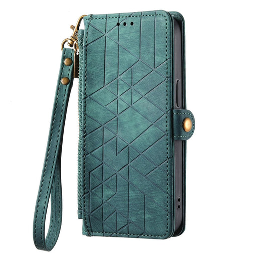For Iphone 15 Geometric Zipper Wallet Side Buckle Leather Phone Case
