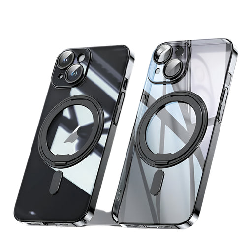 For Iphone 15 Plating Pc 360 Degree Ring Holder Magsafe Phone Case