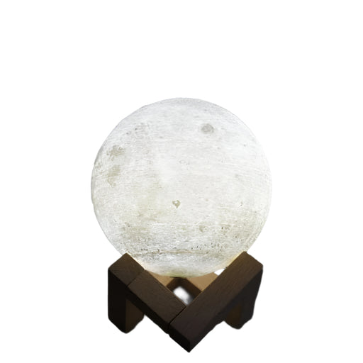 15Cm 3D Print Moon Lamp Touch Control Usb Charging White + Yellow Light Wooden Base