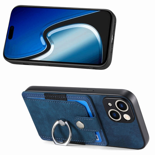 For Iphone 15 Retro Skin-Feel Ring Card Wallet Phone Case