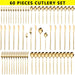 60 Piece Stainless Steel Golden Cutlery Set Mirror Polished Dishwasher Safe