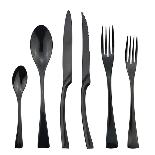 24 Piece Stainless Steel Dinnerware Set Black Cutlery Tableware