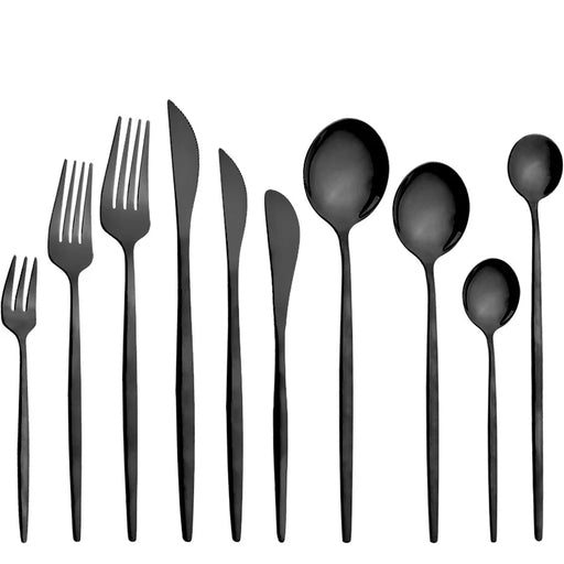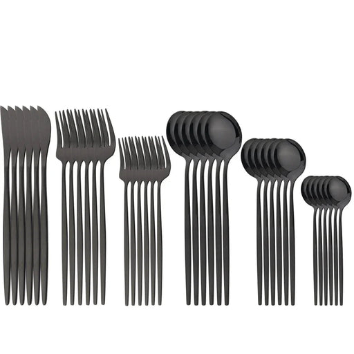 24 Piece Black Stainless Steel Flatware Set For Home Dining