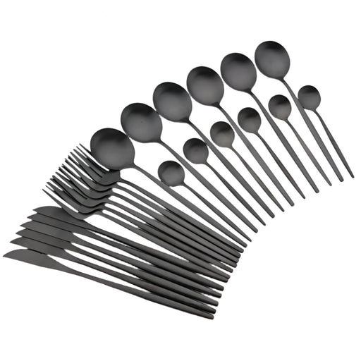 30 Piece Stainless Steel Black Cutlery Set For Western Dining