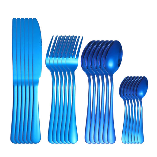 4 / 6 / 16 / 24 Piece Stainless Steel Cutlery Set Blue Handles