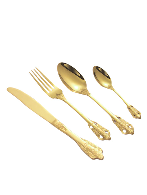 4 / 6 / 16 / 24 Piece Stainless Steel Gold Tableware Set