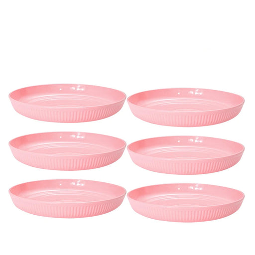 2 / 4 / 6 Piece Reusable Pink Striped Dining Table Plates