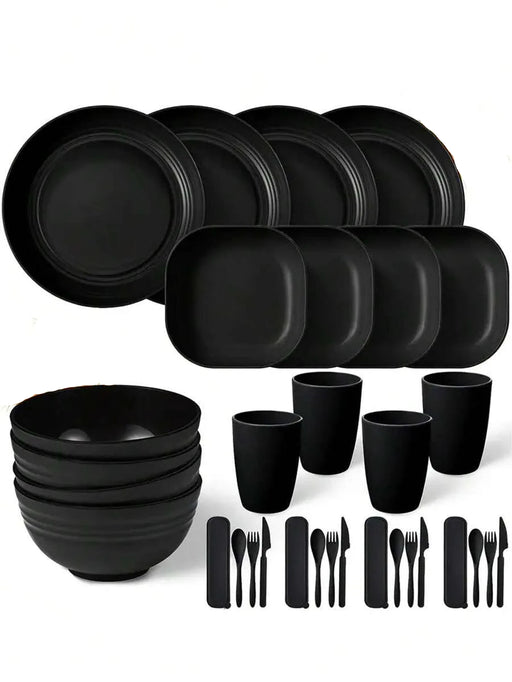 4 / 16 / 20 / 24 / 32 Piece Reusable Plastic Tableware Set For Home Camping Picnics