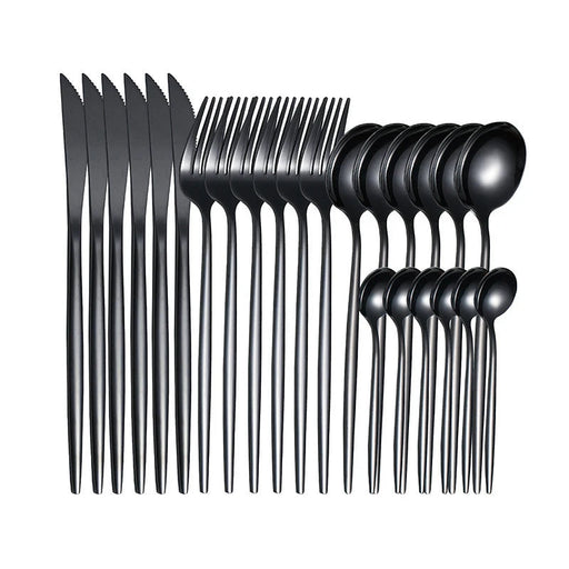 4 / 6 / 16 / 24 Piece Black Stainless Steel Tableware Set For Home Hotel And Kitchen Use