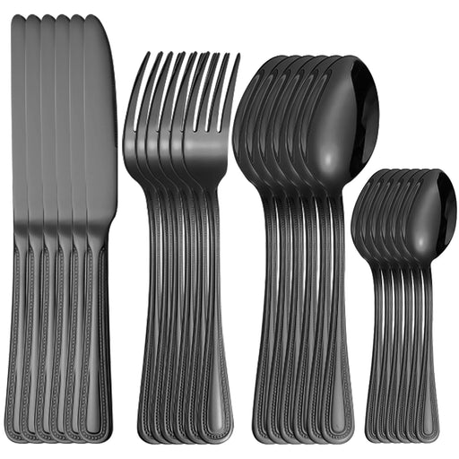 4 / 6 / 16 / 24 Piece Stainless Steel Black Tableware Set