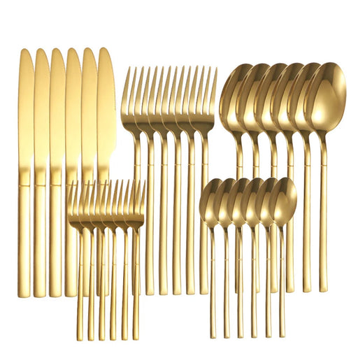6 / 30 Piece Golden Stainless Steel Tableware Set With Dessert & Steak Utensils