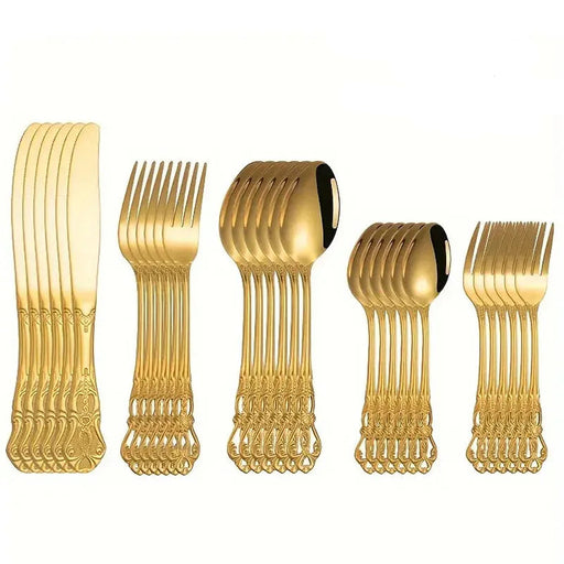 6 / 30 Piece Gold Embossed Stainless Steel Tableware Set