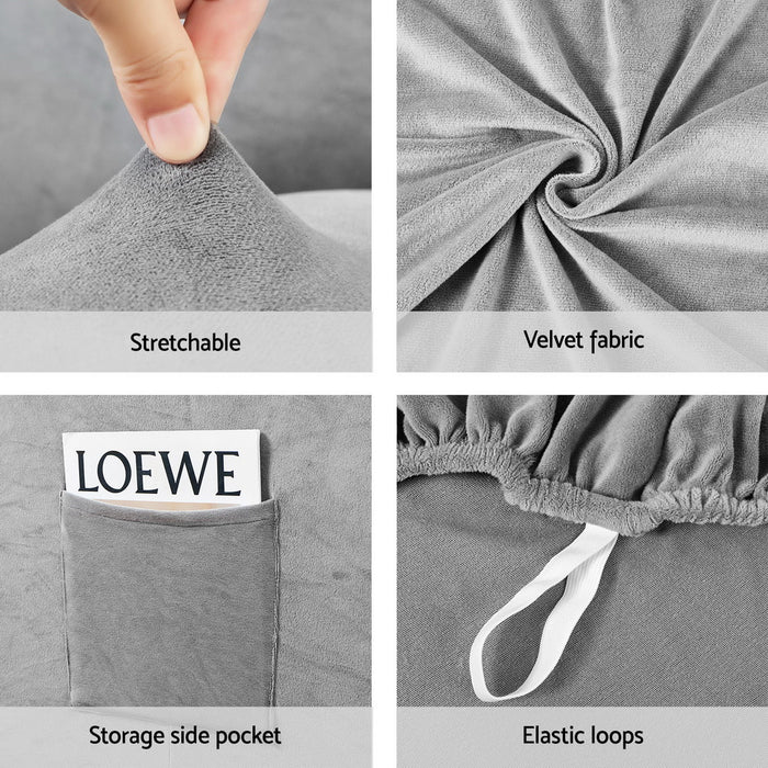 Recliner Chair Covers 1 Seater Velvet Grey