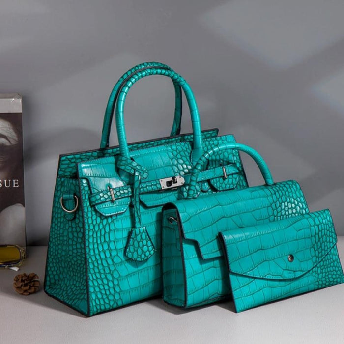 3 In 1 Crocodile Print Diagonal Cross Body Large Capacity Tote Bag