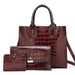 3 In 1 Women Handbag Simple Versatile Crocodile Pattern Large Shoulder Bag