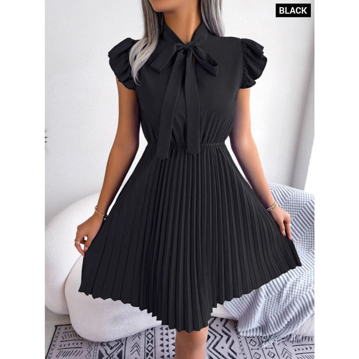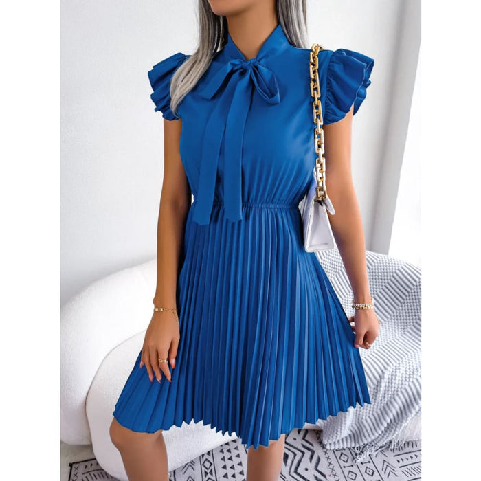 Chic Bow Pleated Dress for Summer