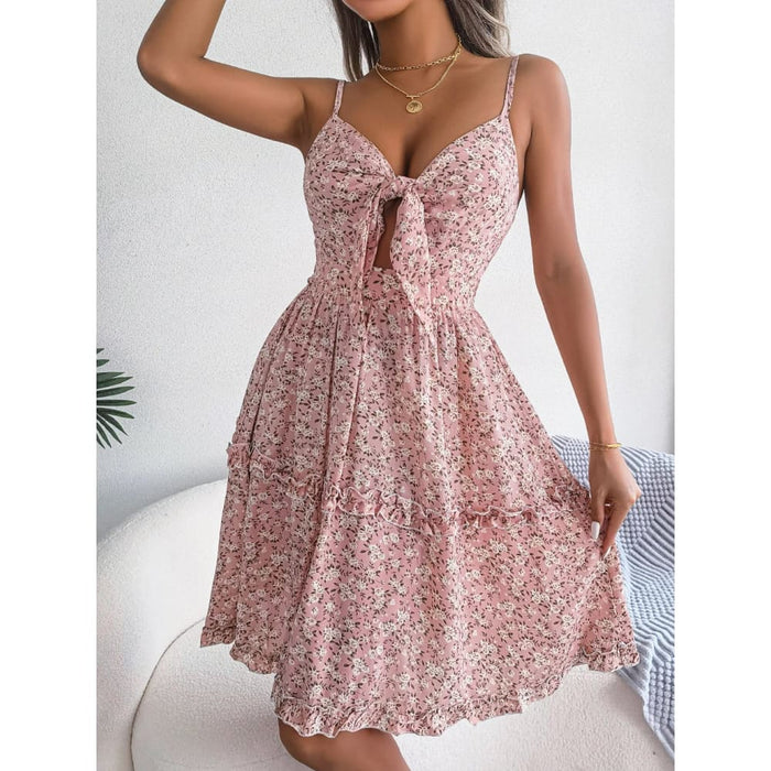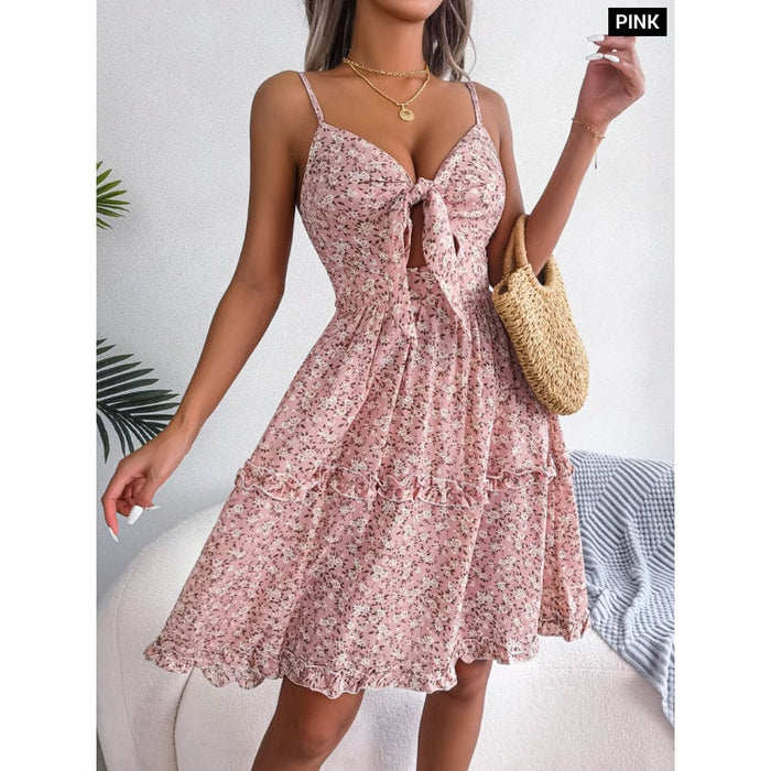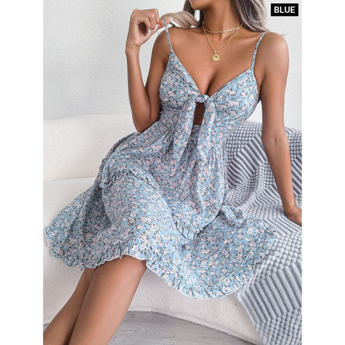 Floral Print Ruffle Chiffon Dress for Summer Beach Style