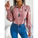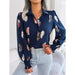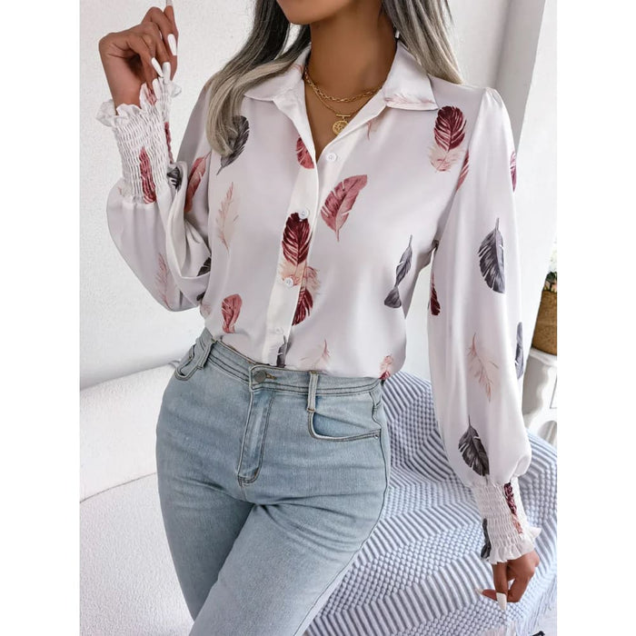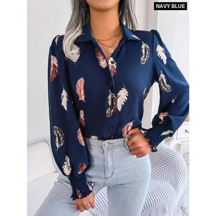 • 1 x Feather Print Collar Long Sleeve Shirt for Women