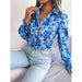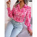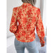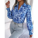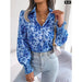 • 1 x Floral Print Collar Lantern Sleeve Shirt for Women
