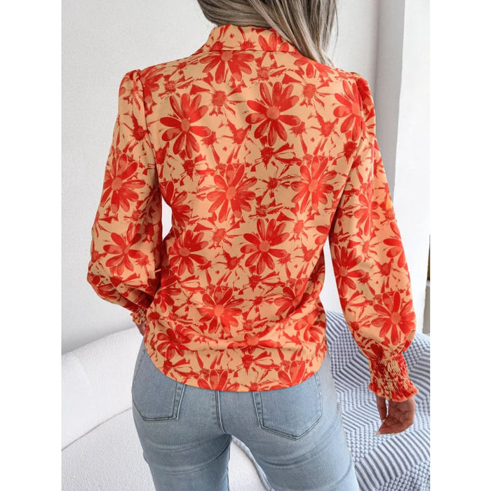 Floral Print Collar Lantern Sleeve Shirt for Women
