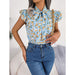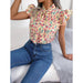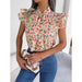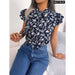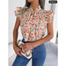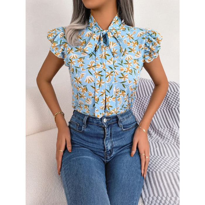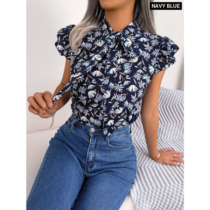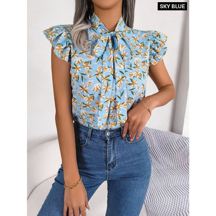 Floral Print Chiffon Blouse with Ruffles and Bow