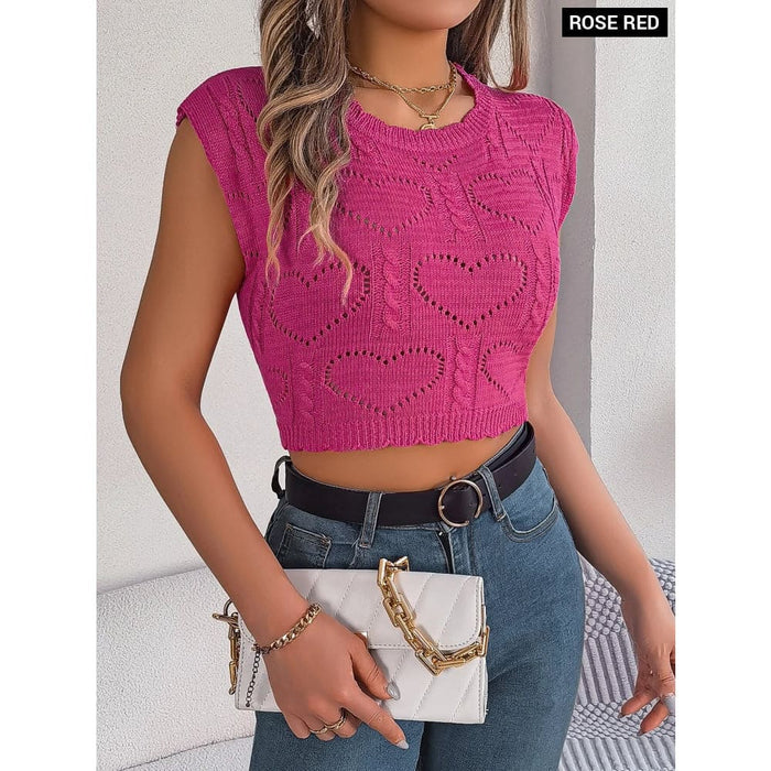 Sleeveless Knit Top with Heart Cutouts