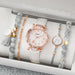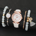 5 Piece Floral Dial Leather Band Watch Set - Without Box