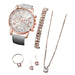 6 Piece Casual Leather Quartz Watch Set Diamonds - Without Box