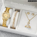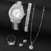 6 Piece Rhinestone Dial Quartz Watch Set Steel Band Diamond Accents
