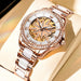 6681 Women Multifunctional Hollow Waterproof Mechanical Watch White Surface Ceramic Belt